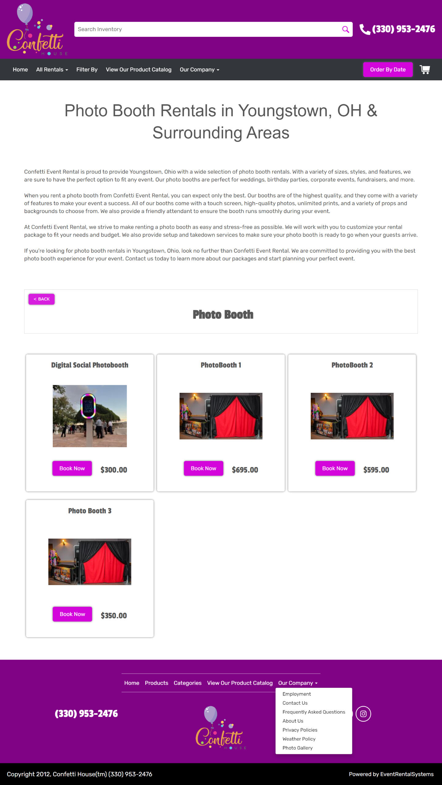 Confetti Event Rental is proud to provide Youngstown, Ohio with a wide selection of photo booth rentals. With a variety of sizes, styles, and features, they are sure to have the perfect option to fit any event. Their photo booths are perfect for weddings, birthday parties, corporate events, fundraisers, and more.